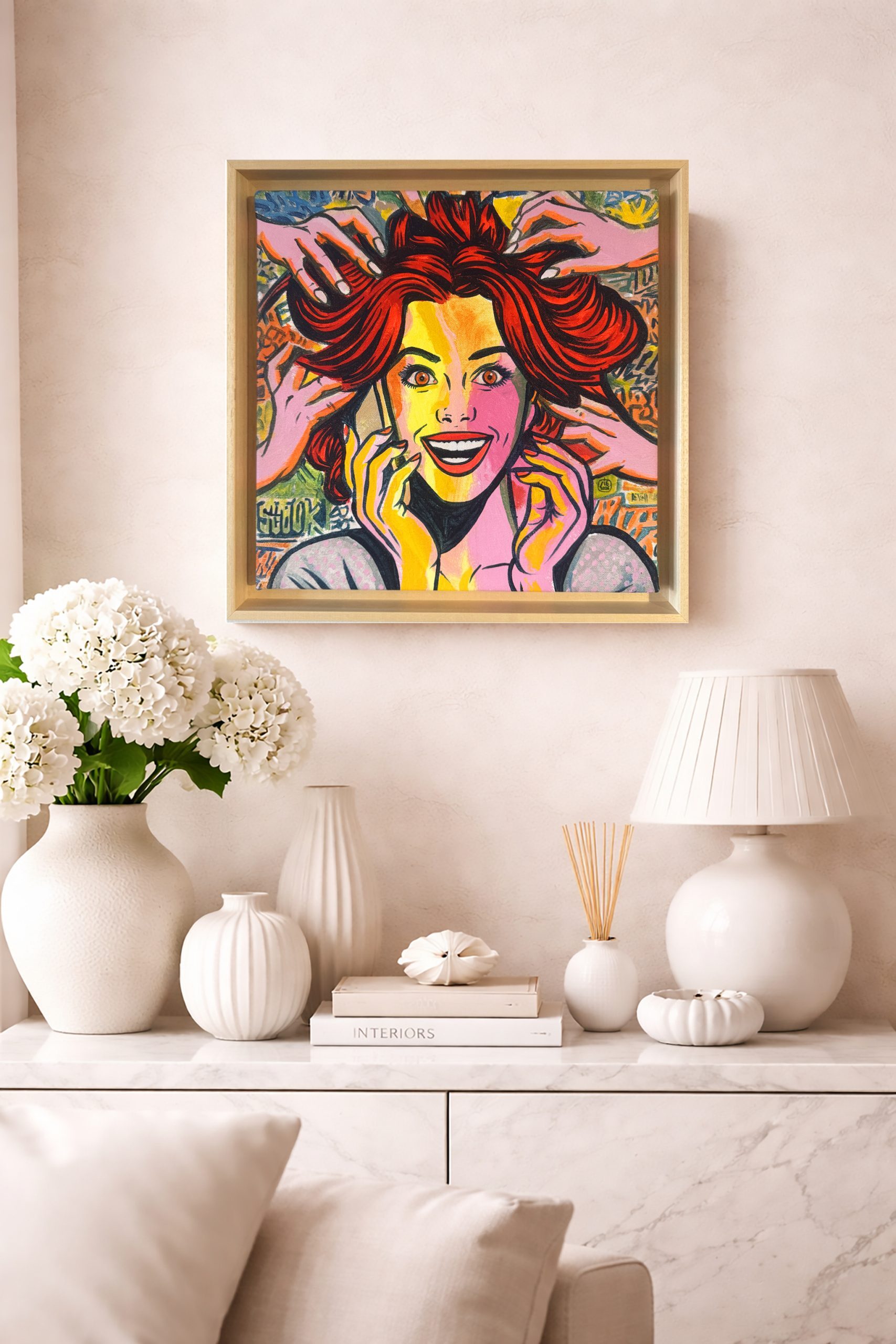 Alegría sorpresiva 2. Acrílico y aerosol sobre lienzo. Obra original. Enmarcado artesanal.