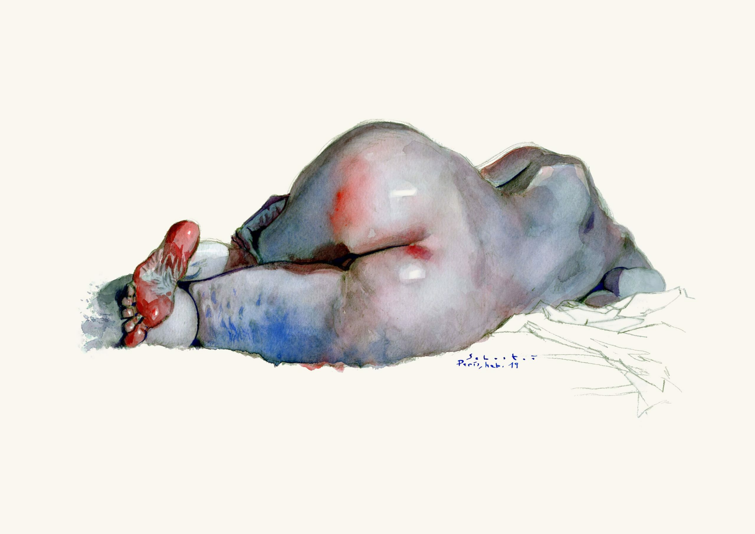 Culo azul. Impresión digital en papel 300g acuarela. Firmada a mano por el artista.