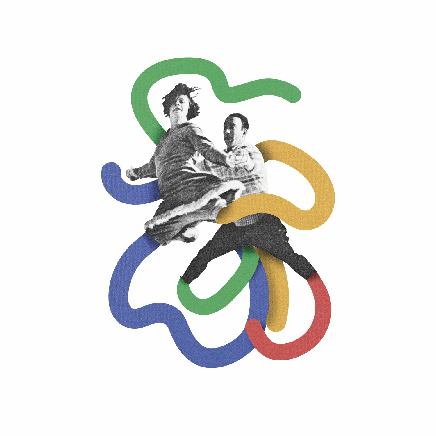 Partiendo de la temática y el nombre de la expo le di bastantes vueltas al tipo de collage que quería. Normalmente suelo tener una estética más crítica o ácida, siempre con humor y belleza pero tirando un poco más a eso, a la crítica. En este caso he querido darle una vuelta tanto a mi estilo como a la temática y verlo todo desde la pura belleza, la libertad, el vuelo, los colores y la sensación de homenaje y alegría. Así mantengo mi estética de collage antigua pero entremezclado con los colores vivos y las formas orgánicas. Así pues cada uno de los collages está protagonizado por sujetos saltando (como caballos totalmente desbocados) pero que no son nadie en concreto que a mí me hayan marcado, es un homenaje abierto a las personas que han sabido mantenerse salvajes, optimistas y con visión de futuro a pesar de los pesares. Las piernas de los protagonistas, coloridas y vivas, se entremezclan entre sí generando una unión y viveza que convierten sus trazos en pasos de baile libres y sin seguir ningún esquema. En resumen, quiero mostrar una visión anónima de esos caballos indomables que hemos tendido, tenemos y tendremos desde una estética colorista y divertida.