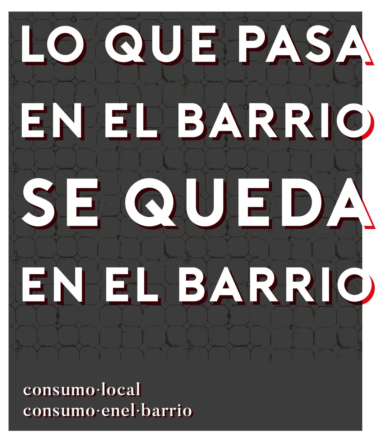 `Lo que pasa en el barrio se queda en el barrio` fue una campaña de guerrilla cartelera. Petamos la ciudad con este diseño donde lo importante era el mensaje, inspirado en una icónica frase de una famosa película, adaptada al formato barrio. Y es que la idea era reivindicar el comercio de barrio, de toda la vida, el de debajo de casa, ante las tendencias actuales de compra por internet, grandes corporaciones… Sin desvelar quien era el mensajero, centramos la fuerza en que el mensaje llegara a la gente de los barrios. El siguiente paso fue repartir el mismo cartel por todos aquellos comercios que lo quisieran colgar en sus escaparates y la verdad es que tuvo mucho éxito. Lo importante fue la conversación que se generó entre comercios y usuarios. Volveremos a «atacar» con nuevas campañas paradar visibilidad al comercio local.